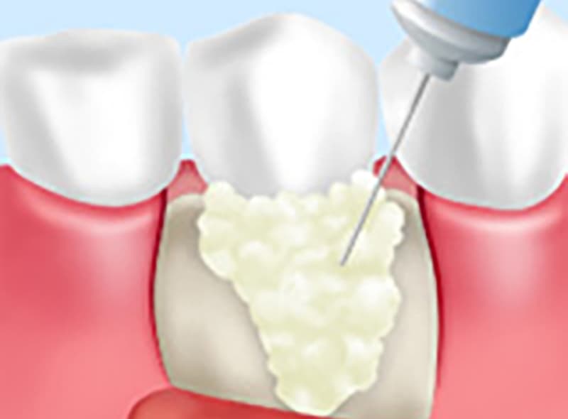 外科的治療は、歯周病治療としてもっともスタンダードなものだといえます。歯と歯ぐきの間の溝「歯周ポケット」からプラークや歯石、また感染した歯肉組織を取り除き、お口の中を細菌のないきれいな環境に整える治療法です。