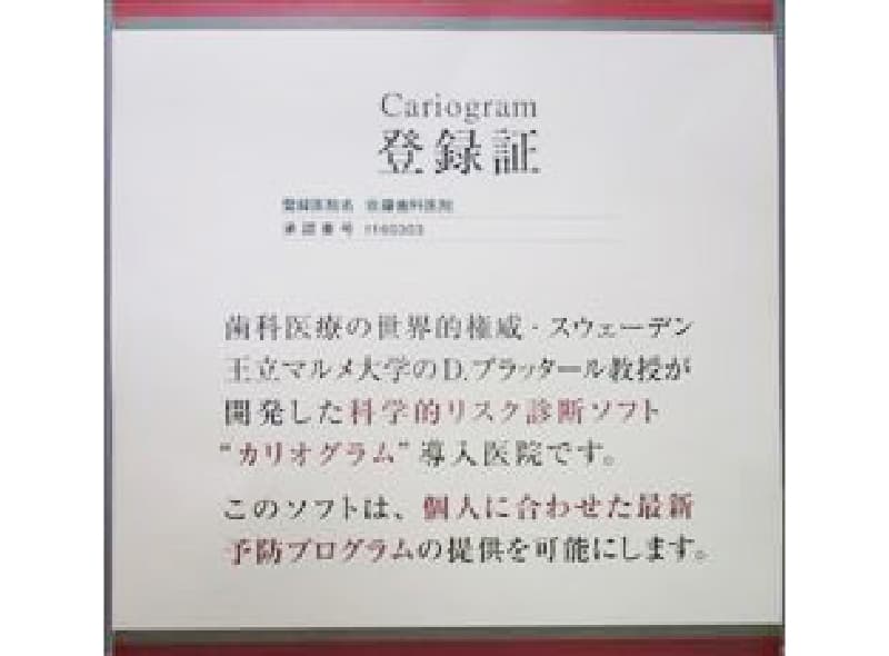 - カリオグラム(むし歯のリスク判定)を作成し、個人個人に合ったむし歯予防を行う。自分はむし歯になりやすいのか、なりにくいのか。そして、何が原因でむし歯になりやすいのかを分析する。そして分析結果に基づいた予防方法を行います。