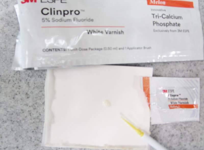 アメリカ3M社から出された、ホワイトバーニッシュは高濃度のカルシウムと高濃度のフッ素が同一部位に同時に作用する新しい塗布剤でエナメル質の再石灰化を強く促します。