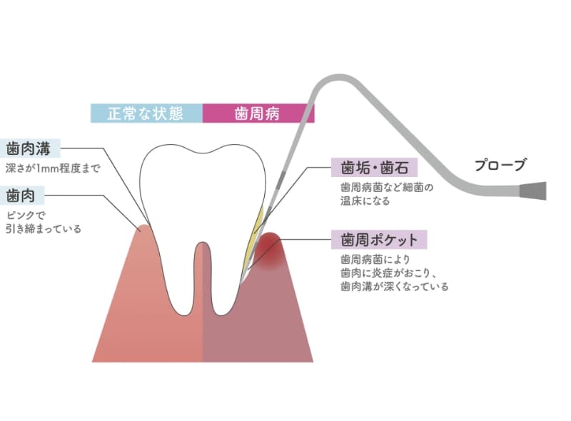 そのためには、まず歯周ポケットの検査が必要です。 -